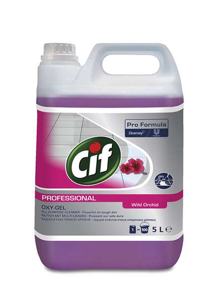 Cif Professionnel Oxy-Gel Multi-usages parfum Orchidée Sauvage à l’oxygène actif est un produit multi-usages parfumé qui s’utilise quotidiennement sur toutes les surfaces lavables comme les murs, les carrelages, les sols protégés ou non.